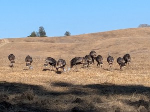 These turkeys were not plump. Their tail feathers didn’t fan behind them like traditional Thanksgiving birds in a children’s art project. I didn’t detect a red wattle around their necks. The ladies flock, soft spoken and prim. They make me question the news stories about grumpy, aggressive turkeys.