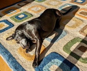 Kohnan is a dog, though at times we think he’s a cat. Like when he luxuriates in the sun and, swear to God, purrs. Snout out, a rub on the rug, all two feet of him stretch, roll, vigorous arch, turn over and repeat. Pure pleasure.